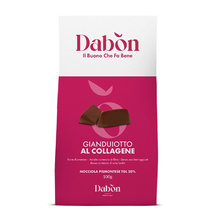 Dal cacao più pregiato della qualità Arriba Ecuador delle nostre tavolette di Fondente unito alla Nocciola Piemontese della più alta qualità, la Tonda Gentile delle Langhe IGP, e il migliore collagene nasce un prodotto esclusivo, creato dai mastri artigiani Dabòn.