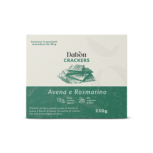 Crackers raffinati a base di farina e fiocchi d’avena, impreziositi dall’olio extravergine di oliva e dal profumo del rosmarino, privi di zuccheri aggiunti e caratterizzati da un elevato contenuto di fibre.
